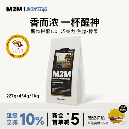 M2M醒物拼配意式 醒神无酸深度烘焙新鲜咖啡豆粉精品美式商用454g
