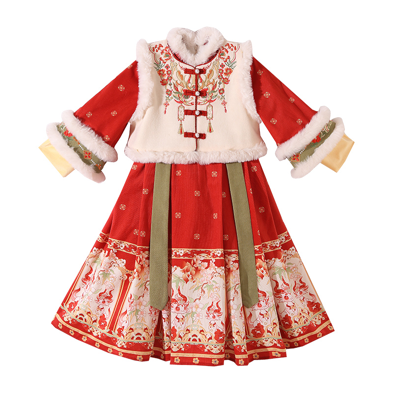 女童汉服国风冬装马面裙套装2025新款古装儿童蛇年新年拜年服冬季