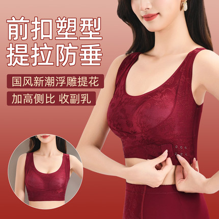 红色本命年国风交叉前扣内衣聚拢调整型防外扩上托大胸显小文胸罩