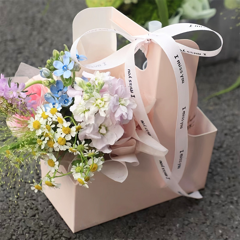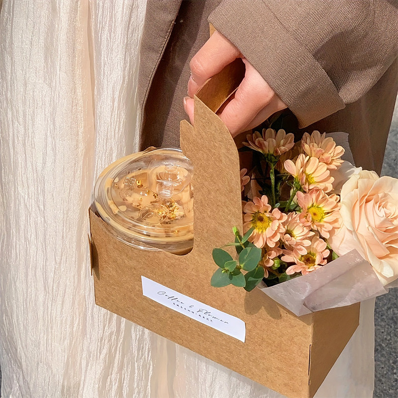 网红咖啡手提花盒奶茶杯托打包外带插花diy材料鲜花礼盒花束包装