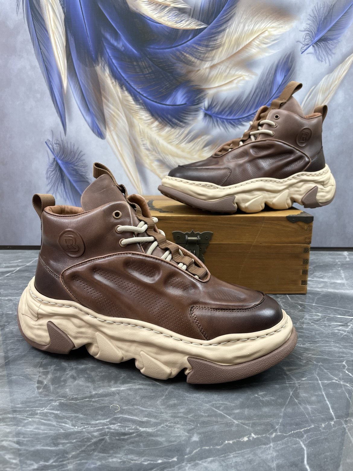 老爹鞋头层牛皮复古厚底轻便增高