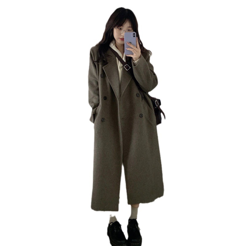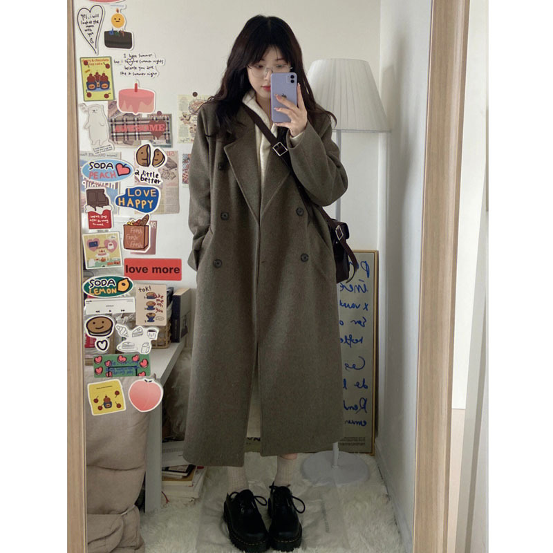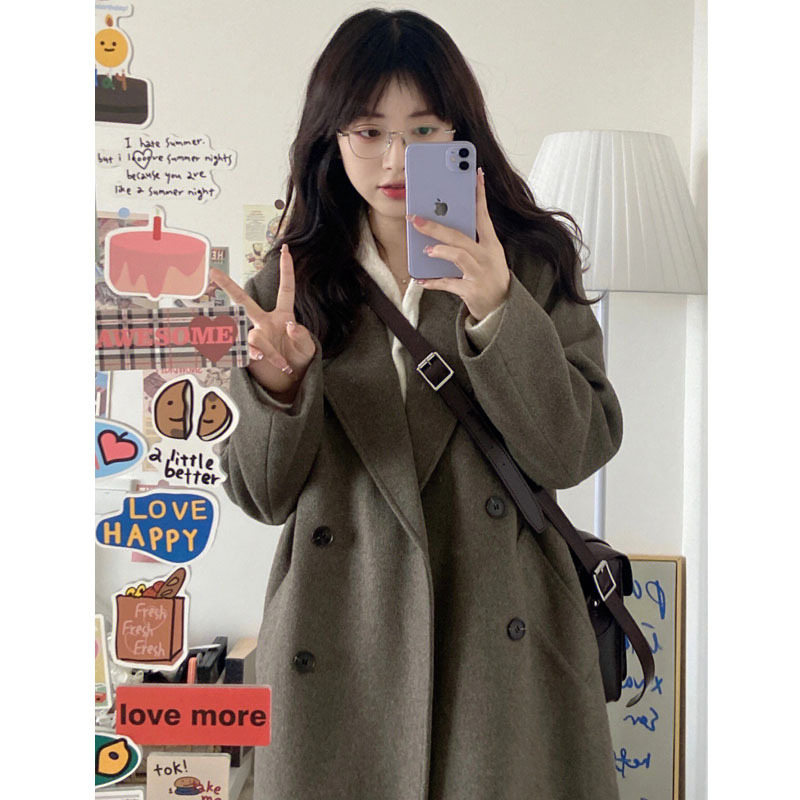 灰色小个子毛呢大衣2025秋冬新款赫本风双排扣中长款呢子大衣