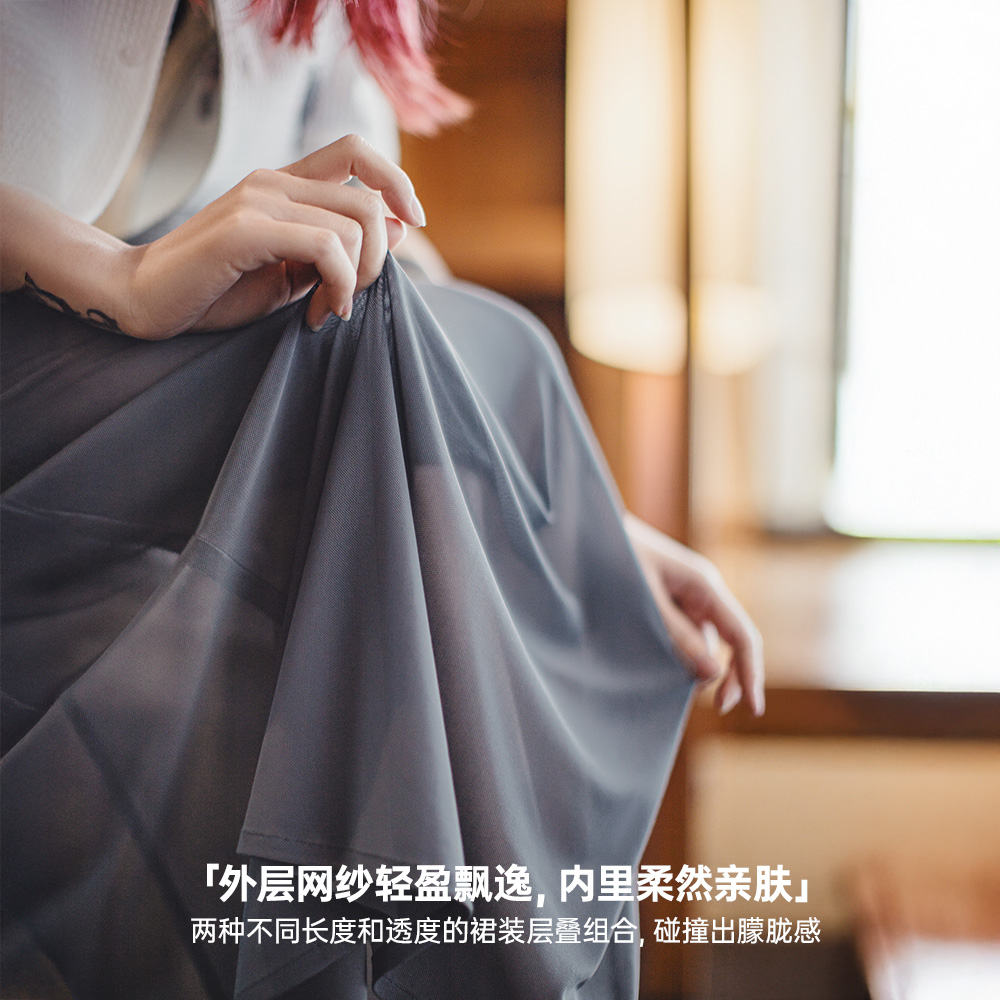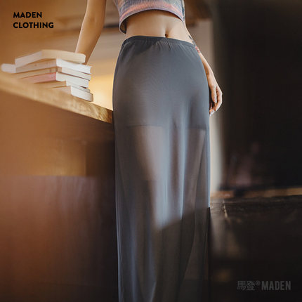 马登夏日纯欲假两件半透明半身裙薄网纱透气高开叉包臀长裙子女士