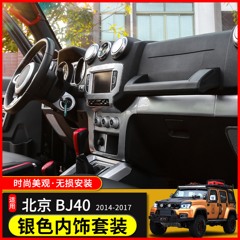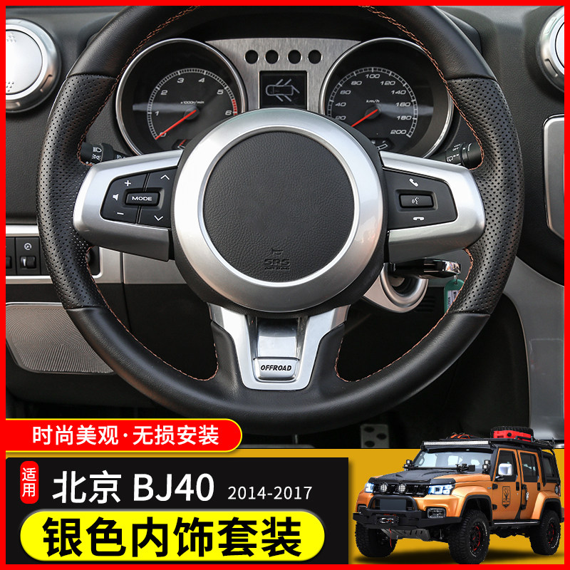 适用北京BJ40L内饰改装件北汽BJ40中控台车门方向盘全套银色装饰