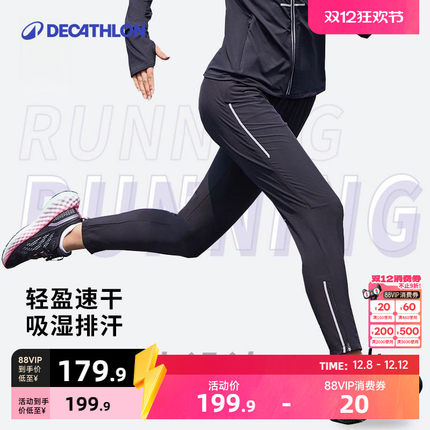 迪卡侬跑步运动裤女秋季户外马拉松压缩裤易穿脱健身速干长裤SAP2