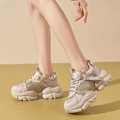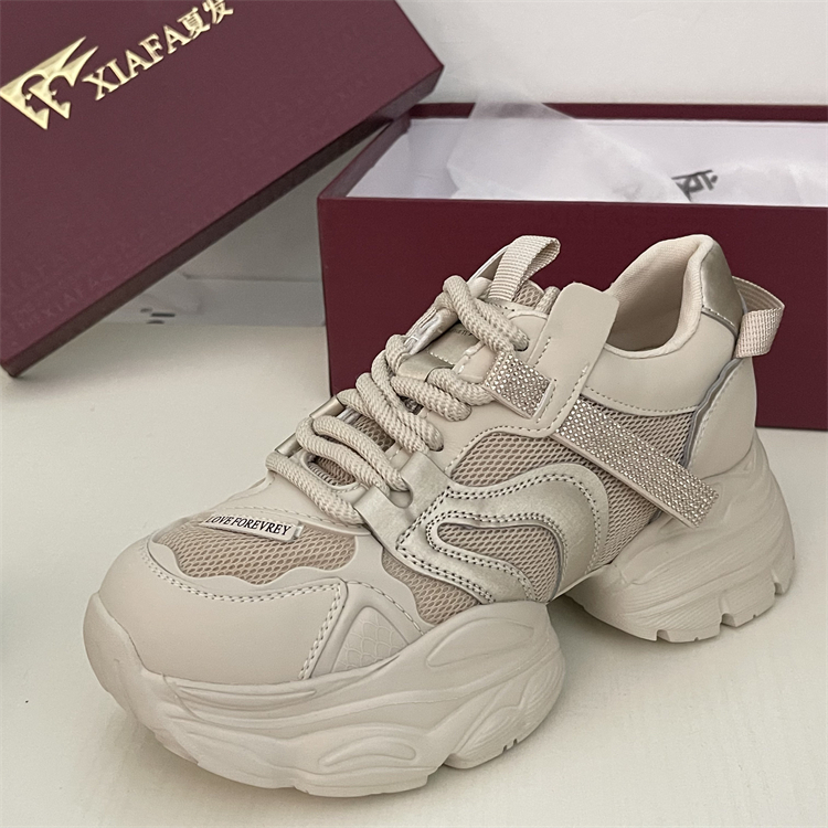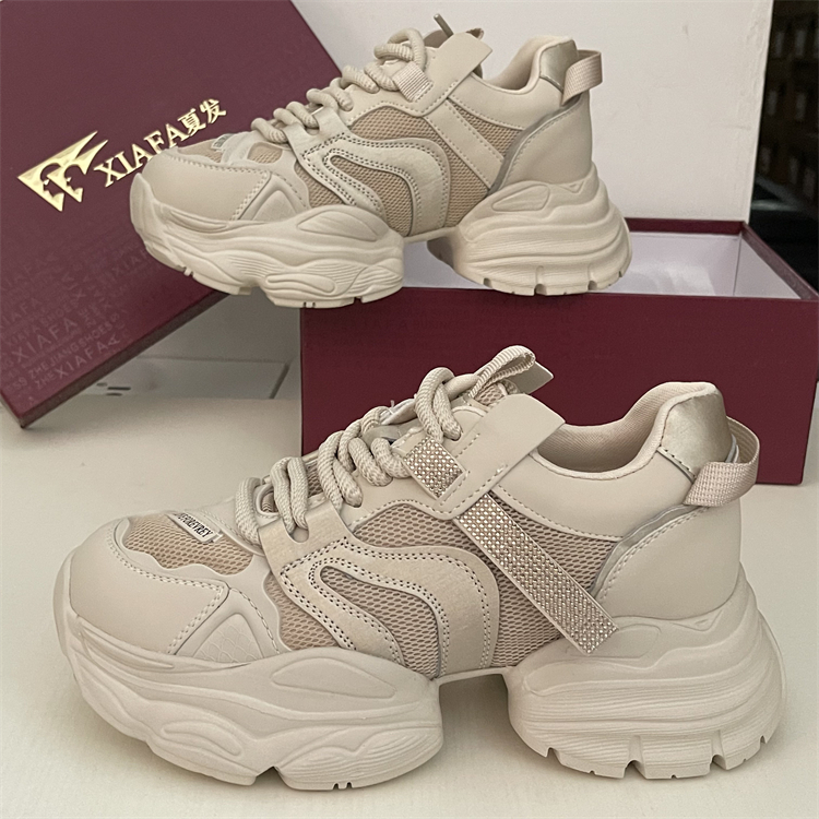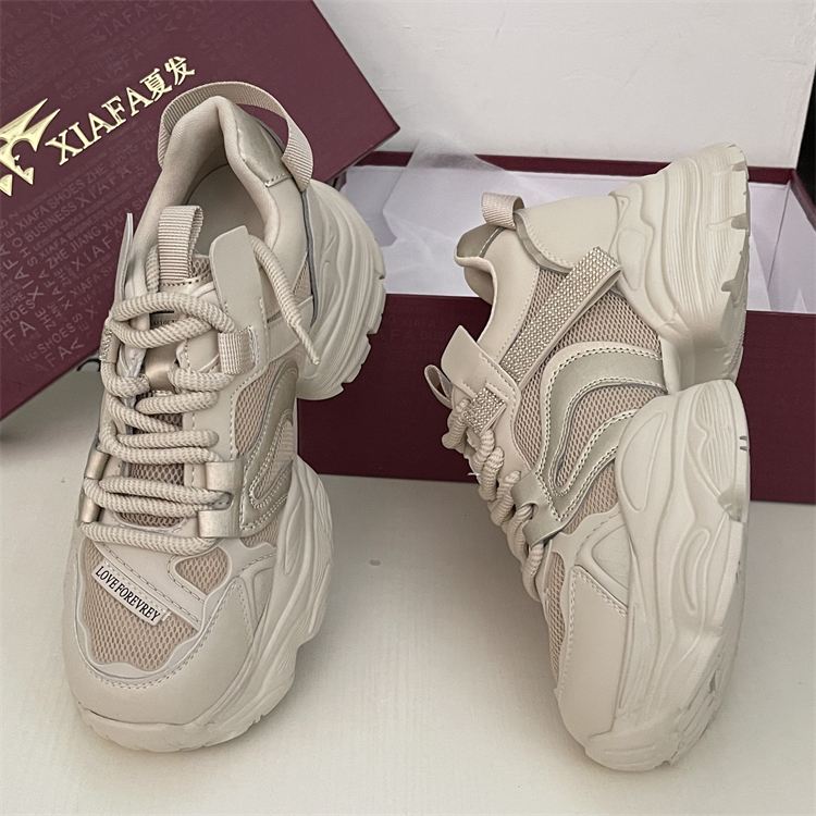 品牌清仓真皮厚底老爹鞋女鞋2025春夏网面透气小个子休闲鞋运动鞋