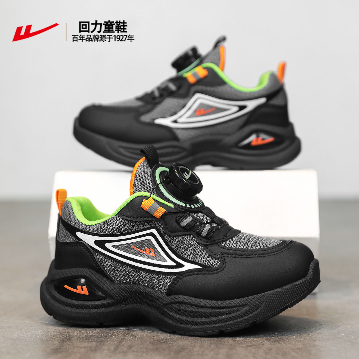 回力童鞋男童运动鞋子春秋2025新款网面透气黑色男孩儿童跑步鞋夏