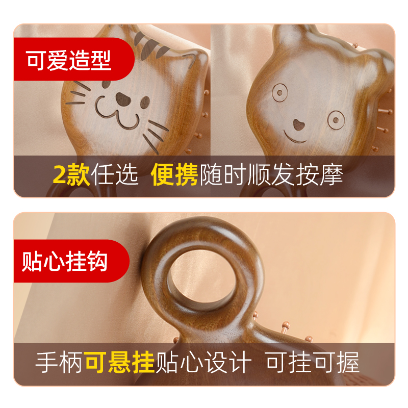 气垫梳子天然檀木梳气囊按摩梳女士专用长发蓬松头部经络家用头梳