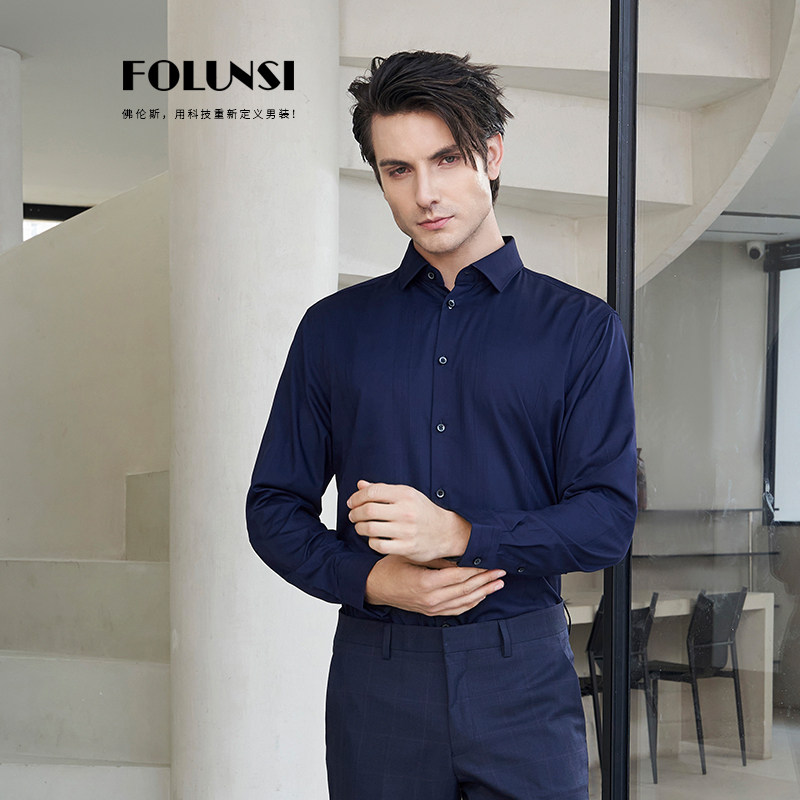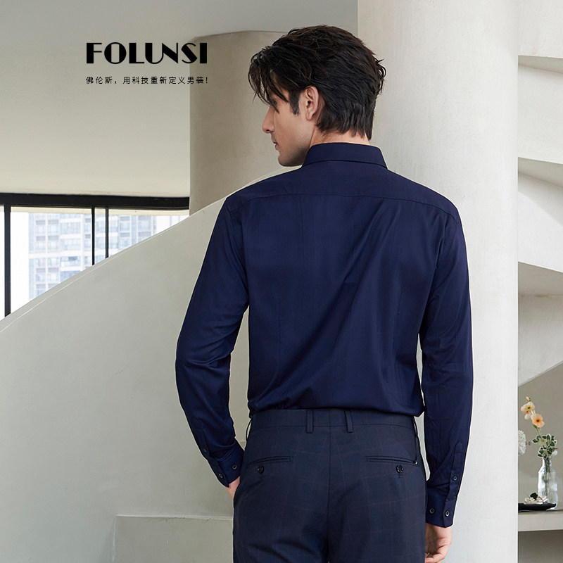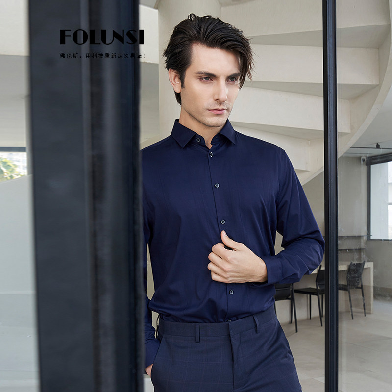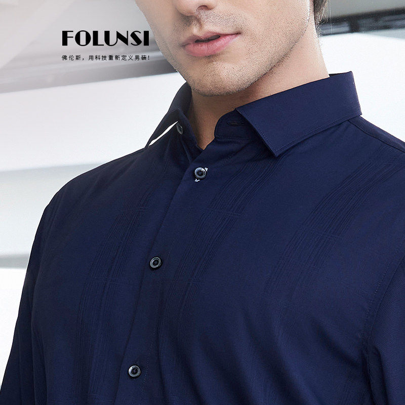 佛伦斯folunsi商务绅士新款男衬衣春秋款深蓝色时尚百搭长袖衬衫