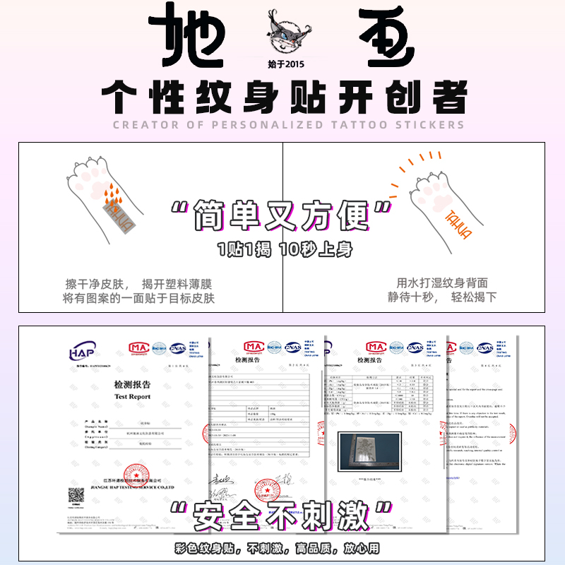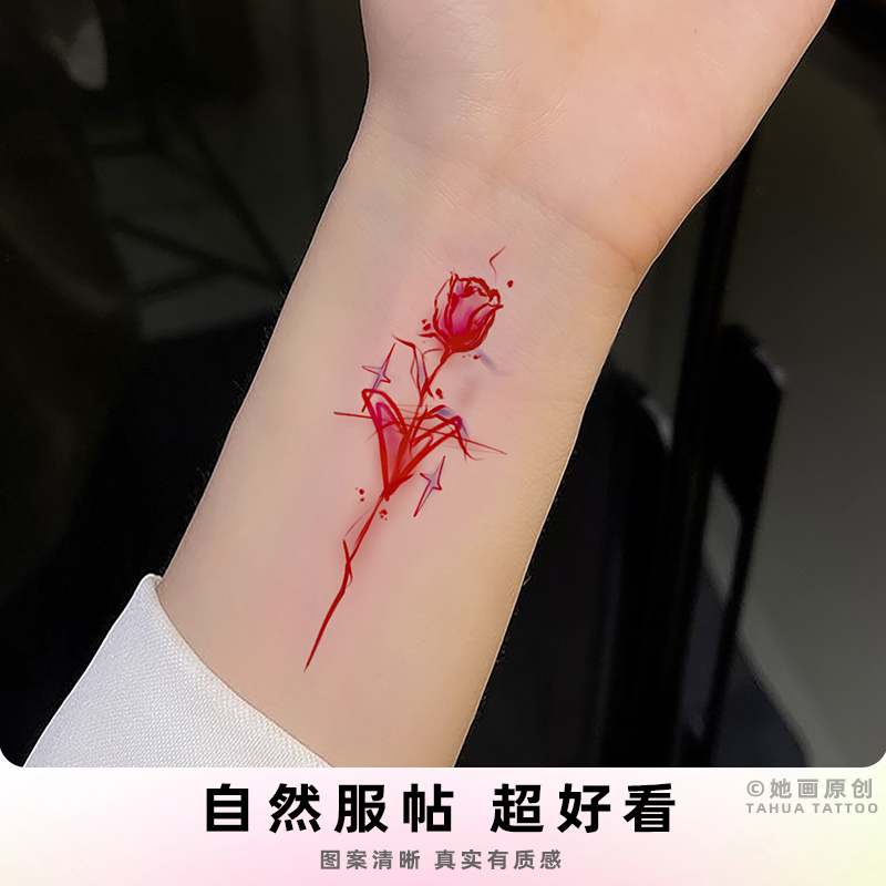 她画 红色郁金香彩色纹身贴防水持久女油画线条风贴纸卡通儿童