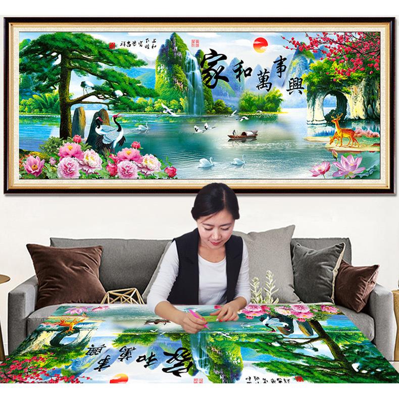 钻石画满钻新款家和万事兴客厅风景点贴钻十字绣5D粘砖石秀2024年