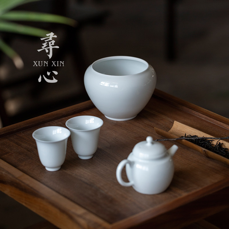 甜白陶瓷建水茶洗水盂茶盂无盖干泡台茶缸茶渣缸家用功夫茶具配件