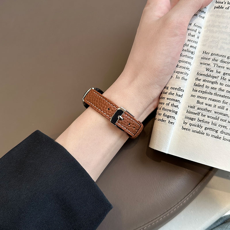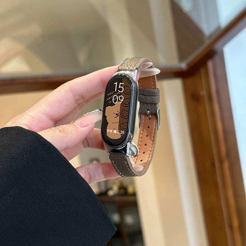 适用小米手环10/9/8NFC版表带针扣皮男女款真皮腕带5/6/7智能运动陶瓷版荔枝纹皮质替换带配件鑫景辉