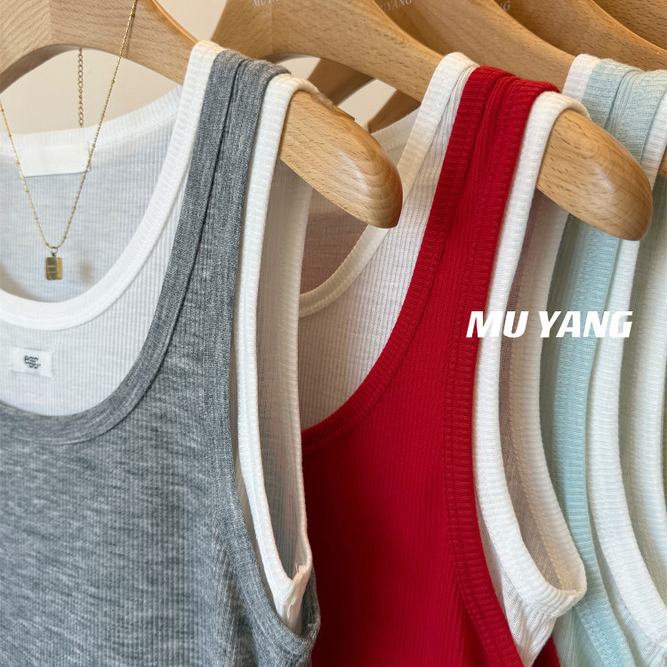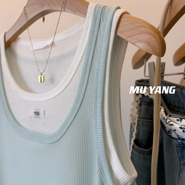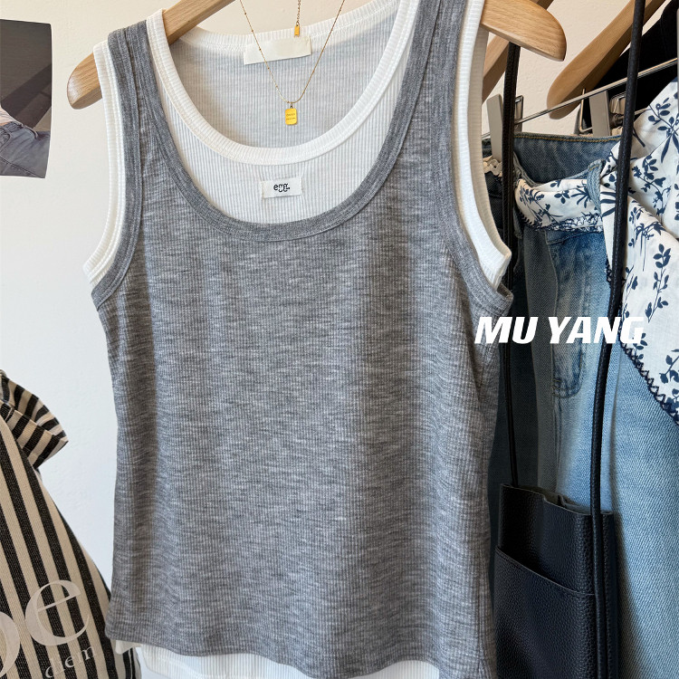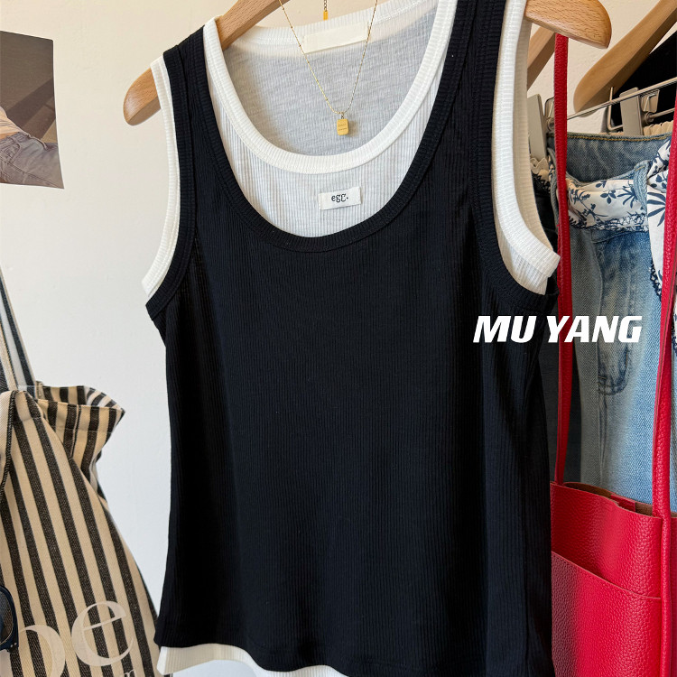 韩国外穿版!假两件撞色螺纹吊带背心内搭打底百搭上衣女夏季新款