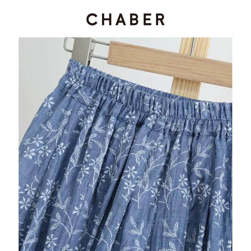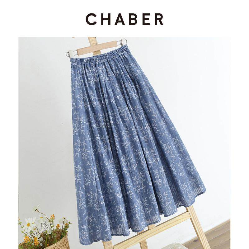 chaber巧帛春季新款法式复古印花半身裙女高腰显瘦中长款A字裙子