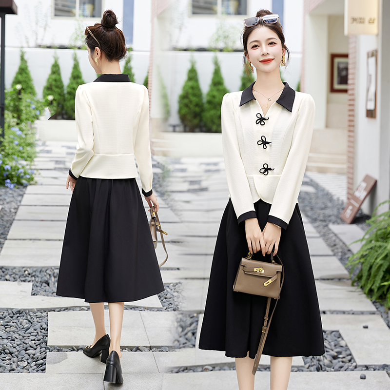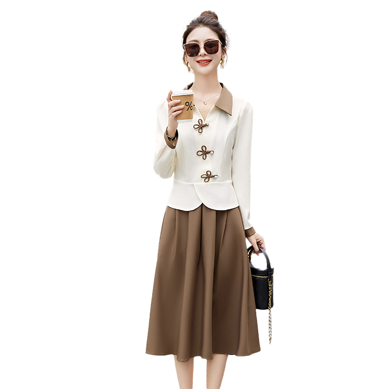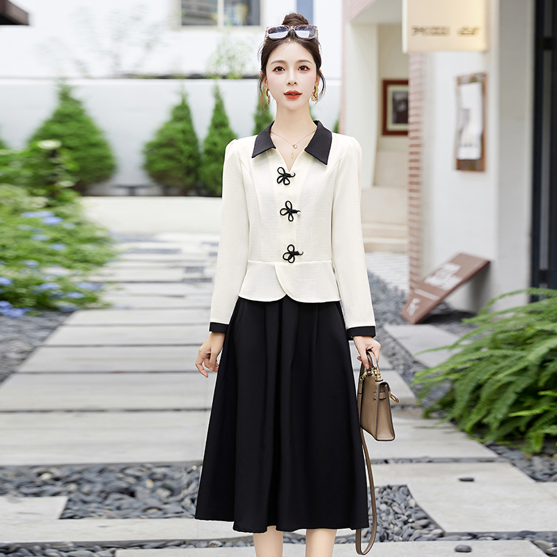 新中式套装连衣裙女2025春秋新款时尚显瘦气质名媛高端长裙两件套