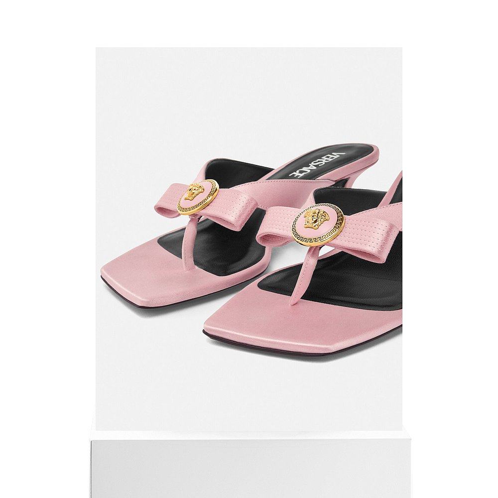 香港直邮Versace GIANNI 丝带低帮缎面高跟凉鞋 10130171A00619