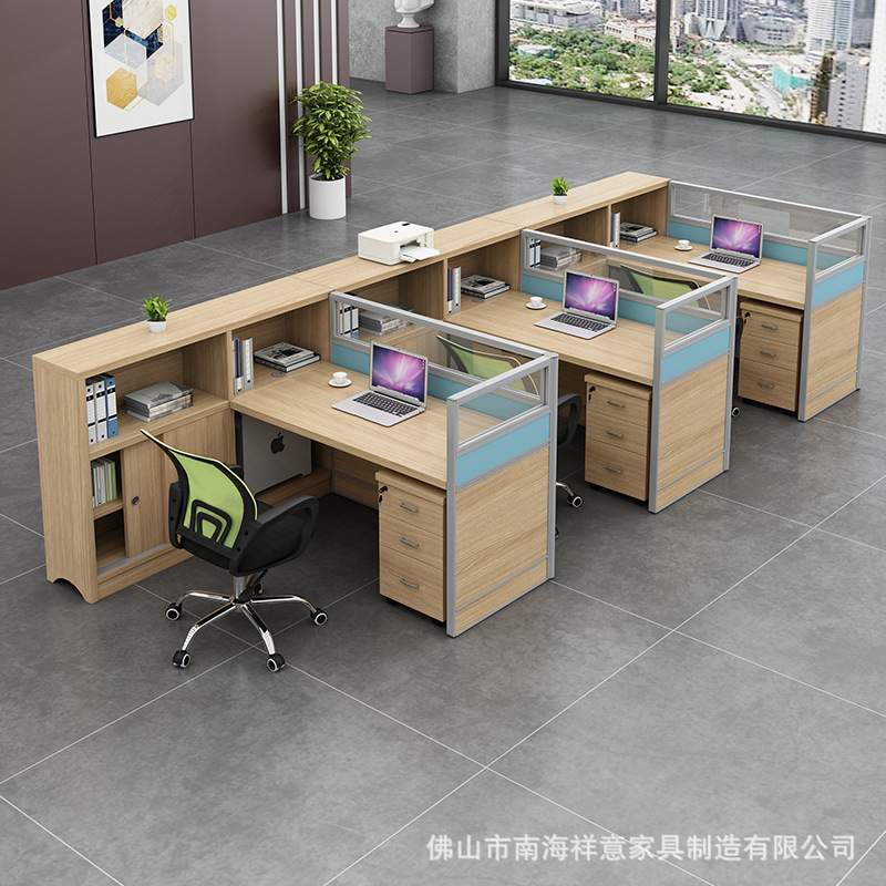 简约现代职员办公桌4人位带卡座屏风工作位办公电脑桌椅组合
