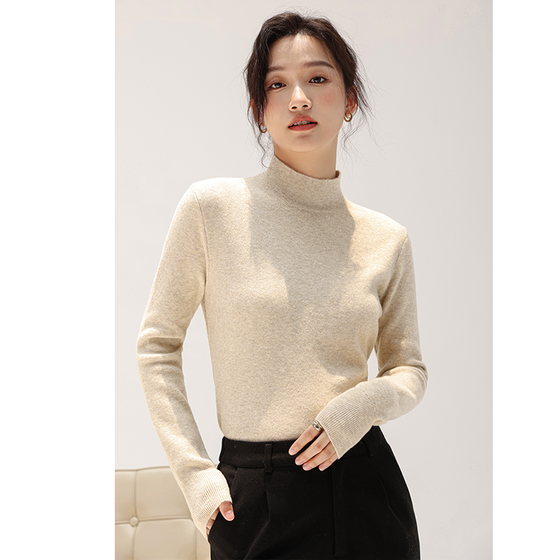 半高领羊毛衫女秋冬修身内搭长袖中领显瘦上衣黑色针织打底衫毛衣