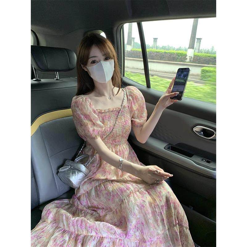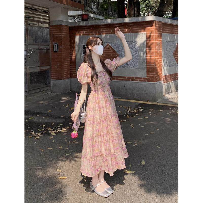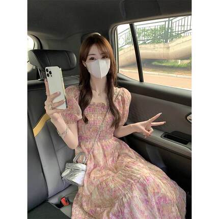 泡泡袖碎花连衣裙夏季2025新款收腰显瘦中长款设计感气质仙女