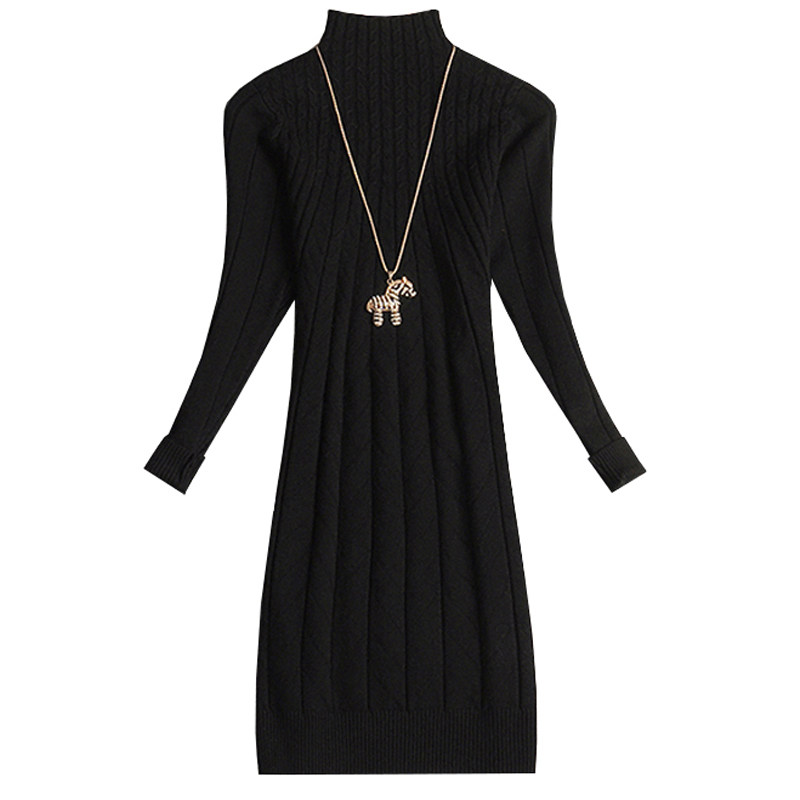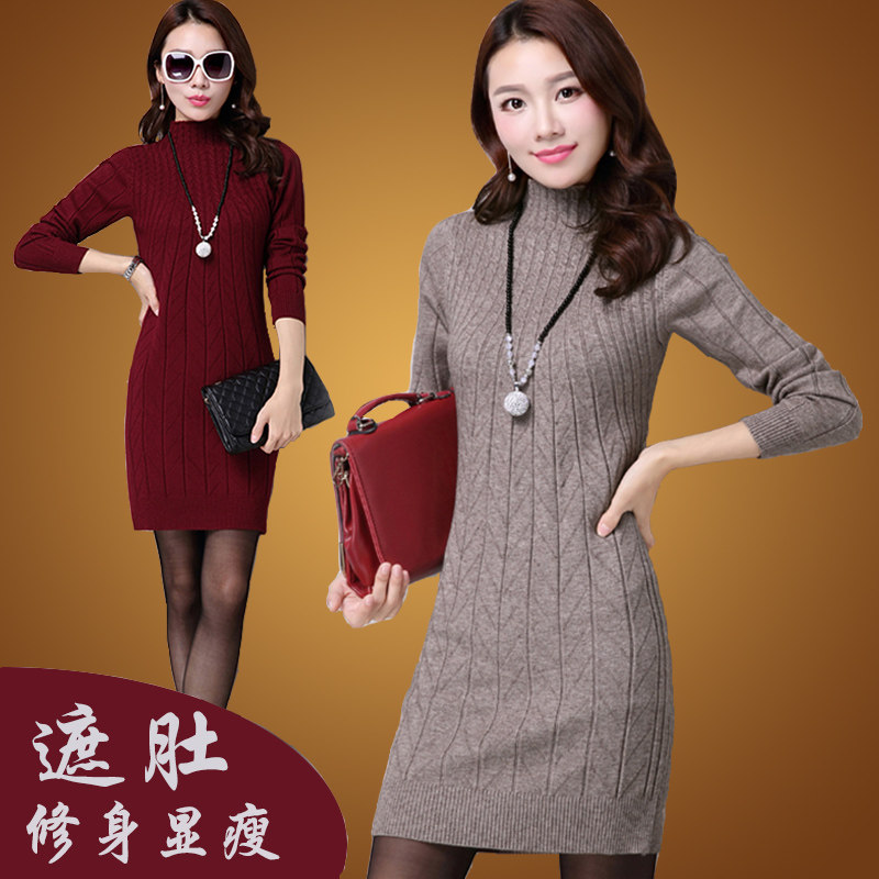 鄂尔多斯市羊毛衫毛衣女秋冬中长款半高领修身羊绒打底衫毛衣裙女