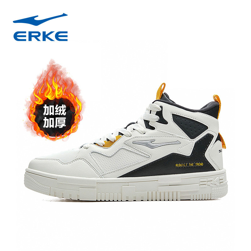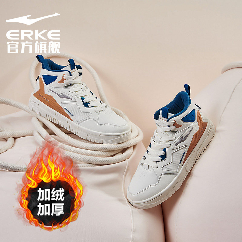 鸿星尔克男鞋高帮运动休闲板鞋春季皮面防水保暖跑步轻便舒适男子