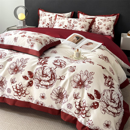 结婚四件套喜庆红色被套2025新款床单婚庆婚嫁全棉纯棉床上用品