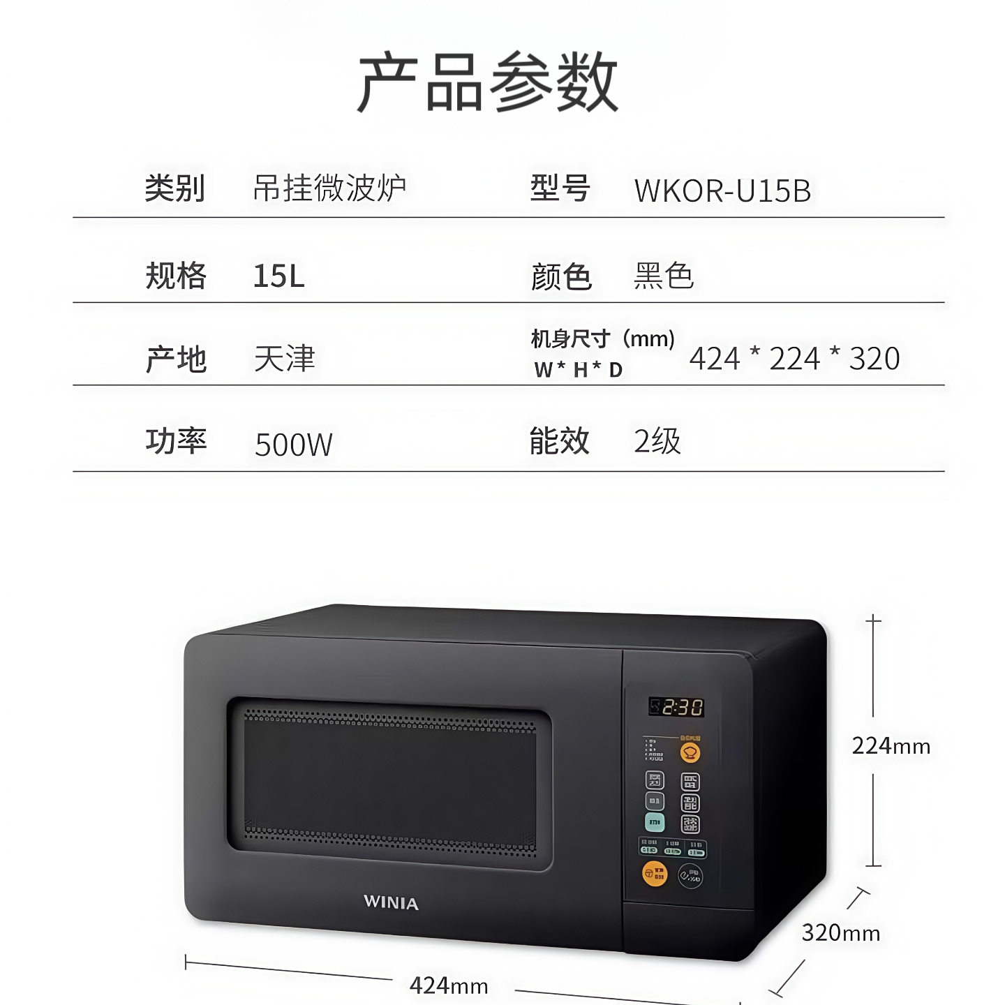 winia WKOR-U15B小型迷你微波炉吊挂式房车微波炉小尺寸车载正品