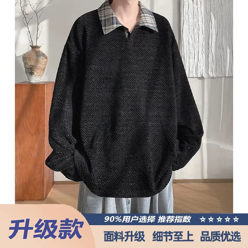 美式复古重磅雪尼尔卫衣男款秋季小香风针织长袖t恤慵懒风polo衫