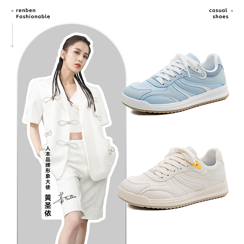 人本板鞋女2025春秋季新款休闲运动小白鞋潮鞋学生百搭德训鞋女鞋