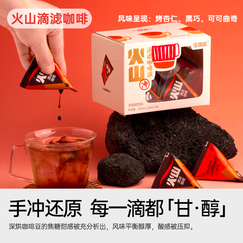 连咖啡瞬时锁鲜滴滤咖啡纯黑咖啡液利乐包冰川+火山组合装 0糖0脂