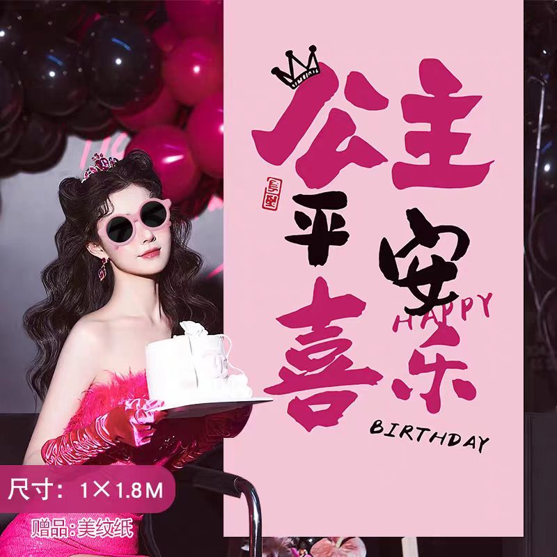 生日快乐背景装饰布置女孩挂布条幅横幅公主18岁派对气球拍照道具