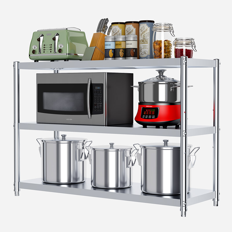 不锈钢置物架落地多层微波炉烤箱储物架子家用收纳货架双层锅架34