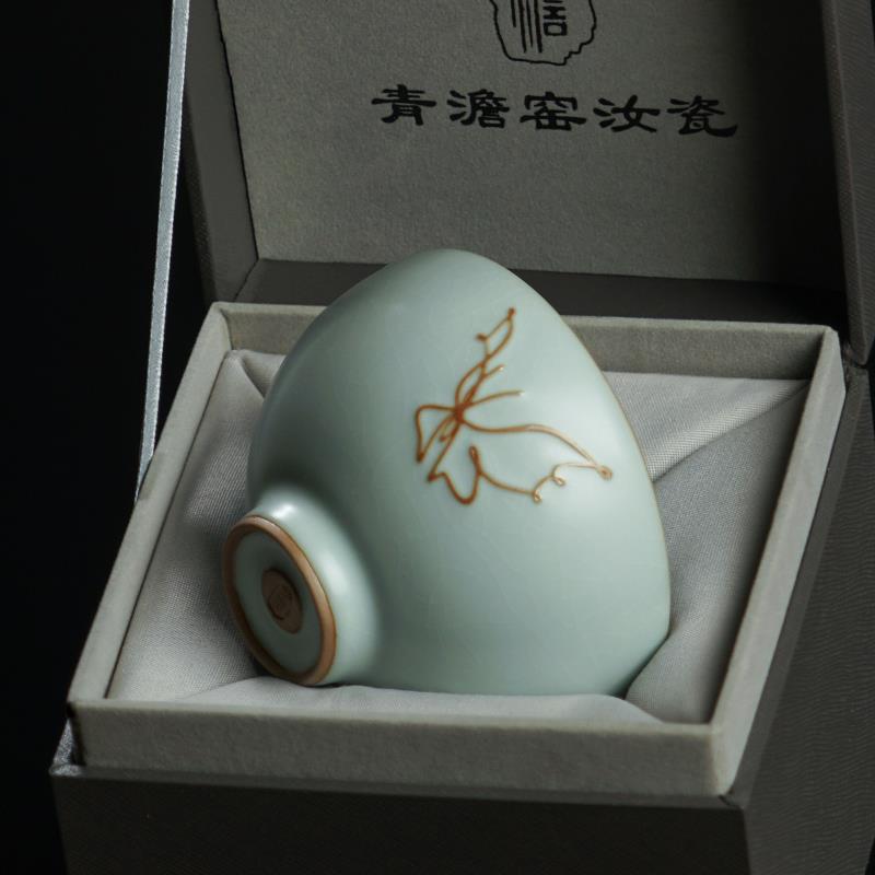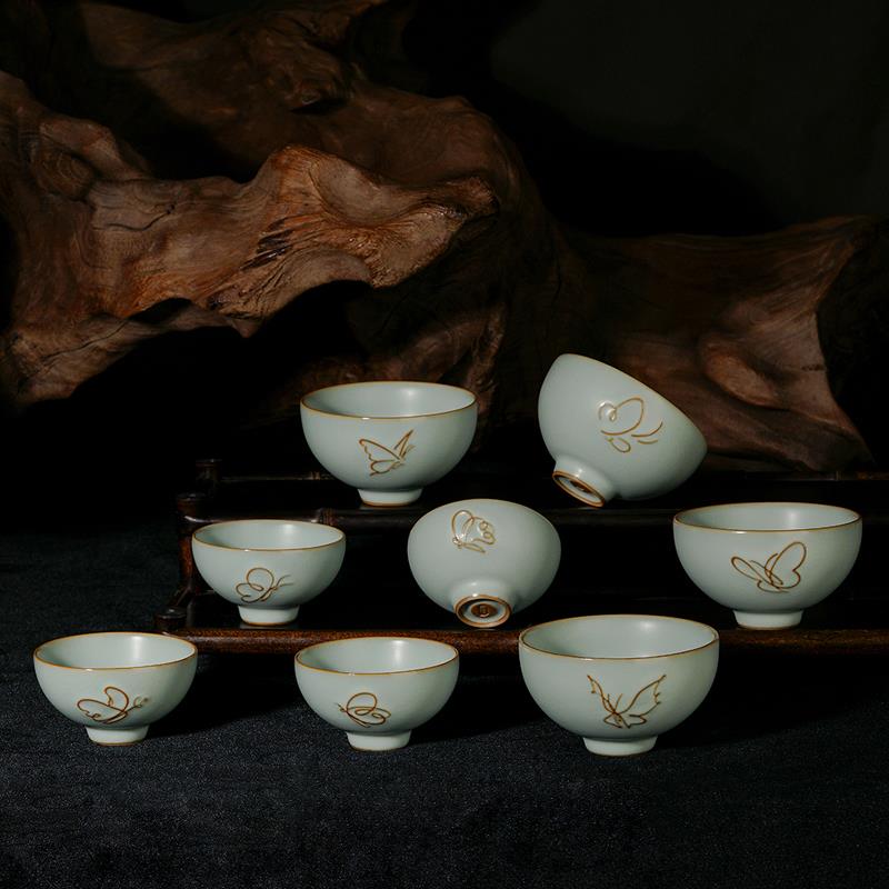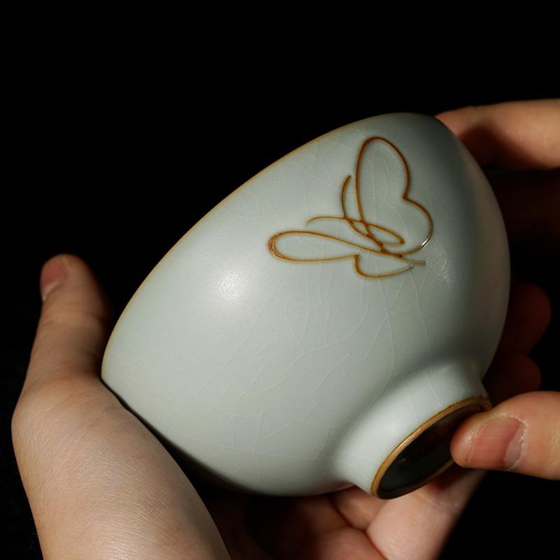 景德镇汝窑茶杯手工主人杯单杯陶瓷原矿釉仿古宫廷风茶碗开片可养