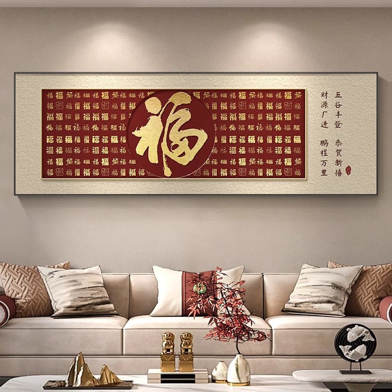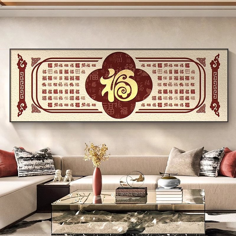 新中式百福图客厅装饰画寓意好沙A发背景墙画挂件福字挂画横幅壁
