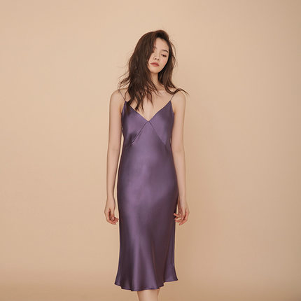 SLKMRKT乃丝真丝吊带V领春秋性感睡裙桑蚕丝女19姆米气质居家睡衣