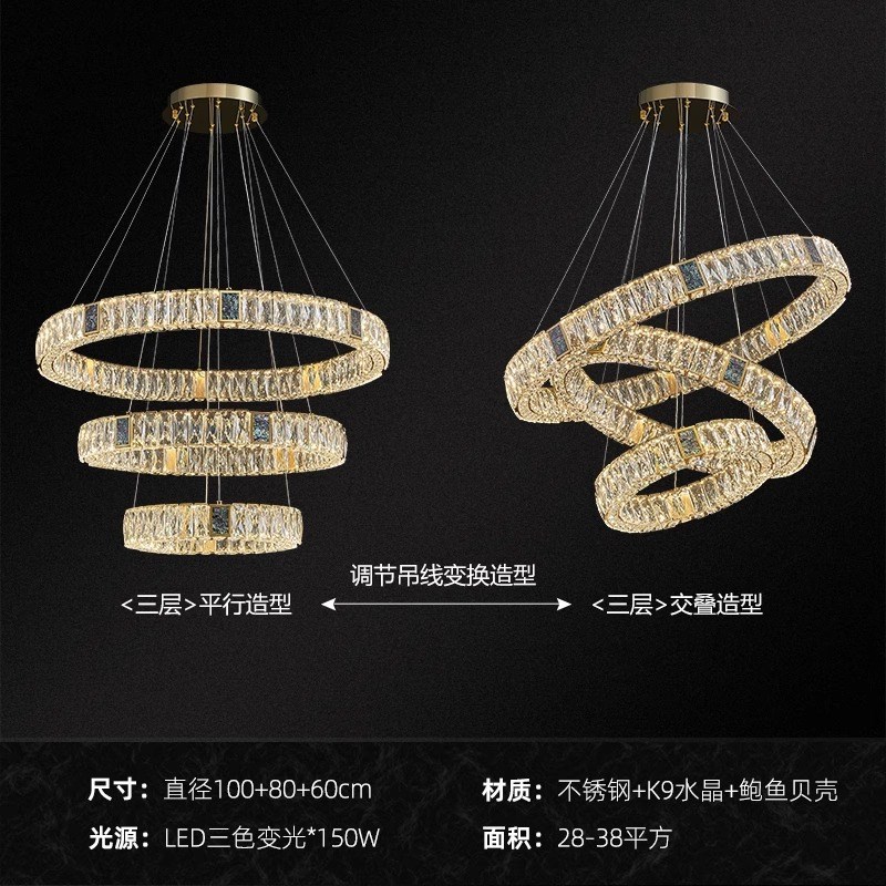 轻奢水晶吊灯贝壳客厅灯大气家用别墅复式Q楼梯吊灯餐厅灯具
