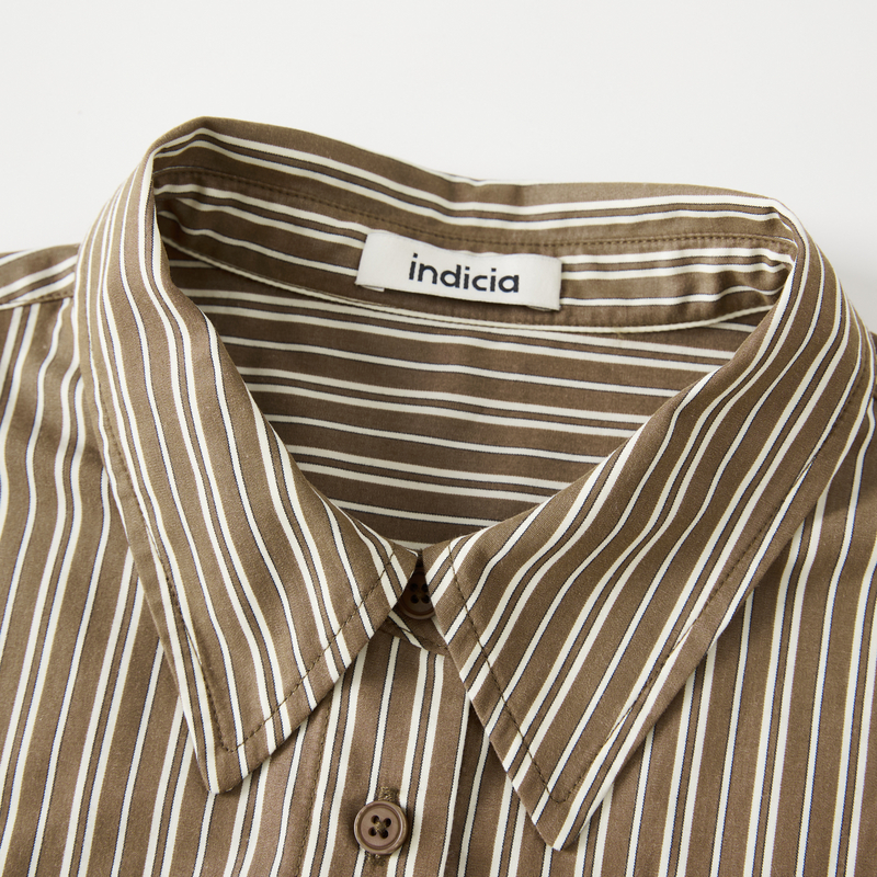 indicia标记老钱风做旧感法式竖条纹通勤衬衫秋冬女装F2D4CS813N
