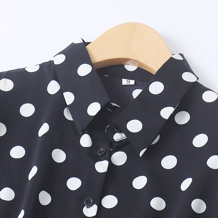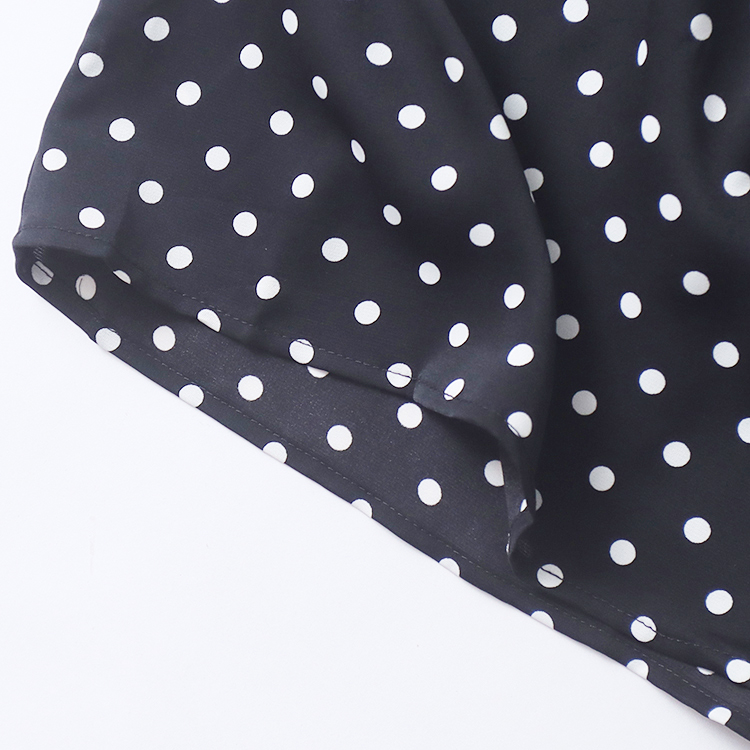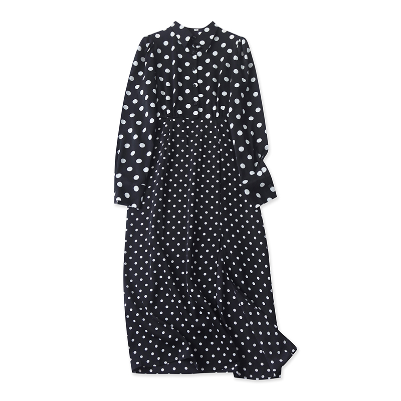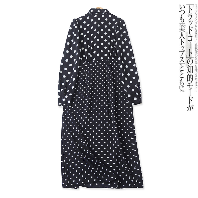 波点雪纺裙春季新款外贸女装时尚百搭收腰显瘦长袖开叉长裙17761