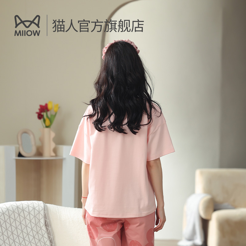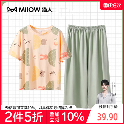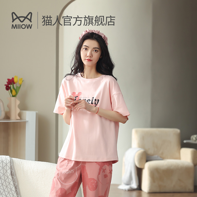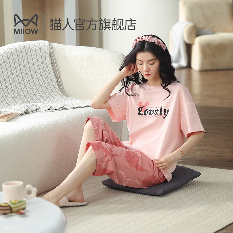 【折】猫人睡衣夏季纯棉女士夏天短袖短裤薄款清仓