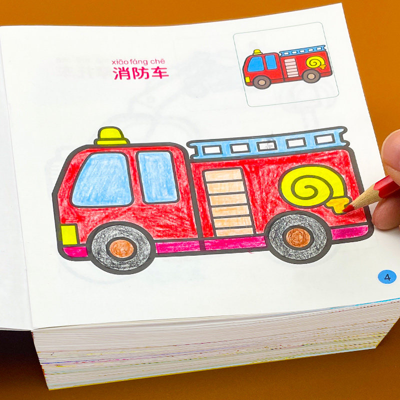 汽车涂色画画本儿童益智玩具diy填色绘本绘画册幼儿园宝宝图画书2-3-6岁小男童 男孩恐龙美术涂鸦套装