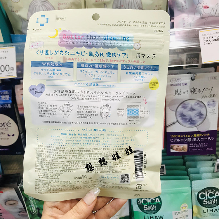 现货日本kose高丝痘痘肌肤保湿水油平衡滋润净痘祛痘控油面膜7枚