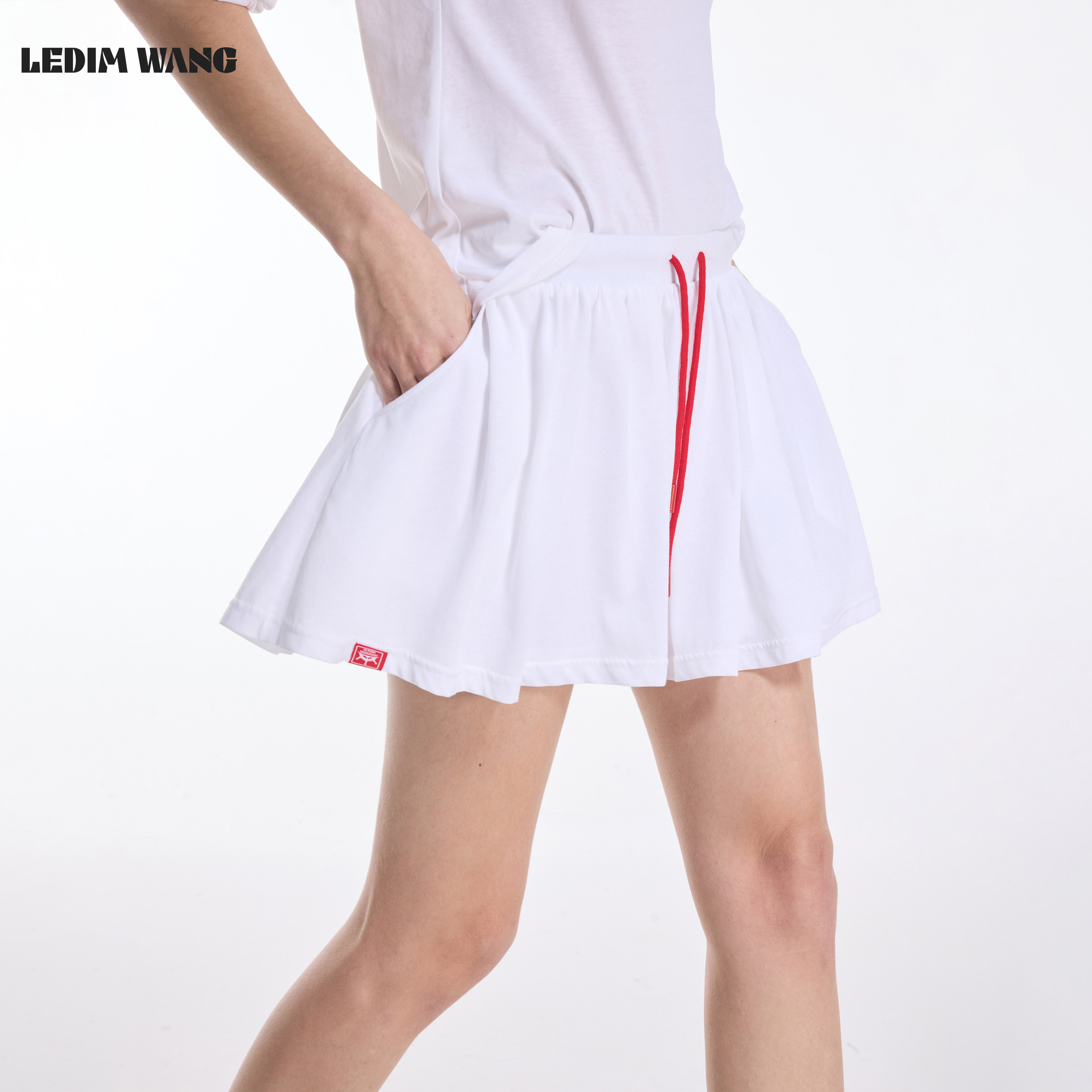 LEDIM WANG复古美式针织裙裤短裤女2026春夏新款白色薄款短裙