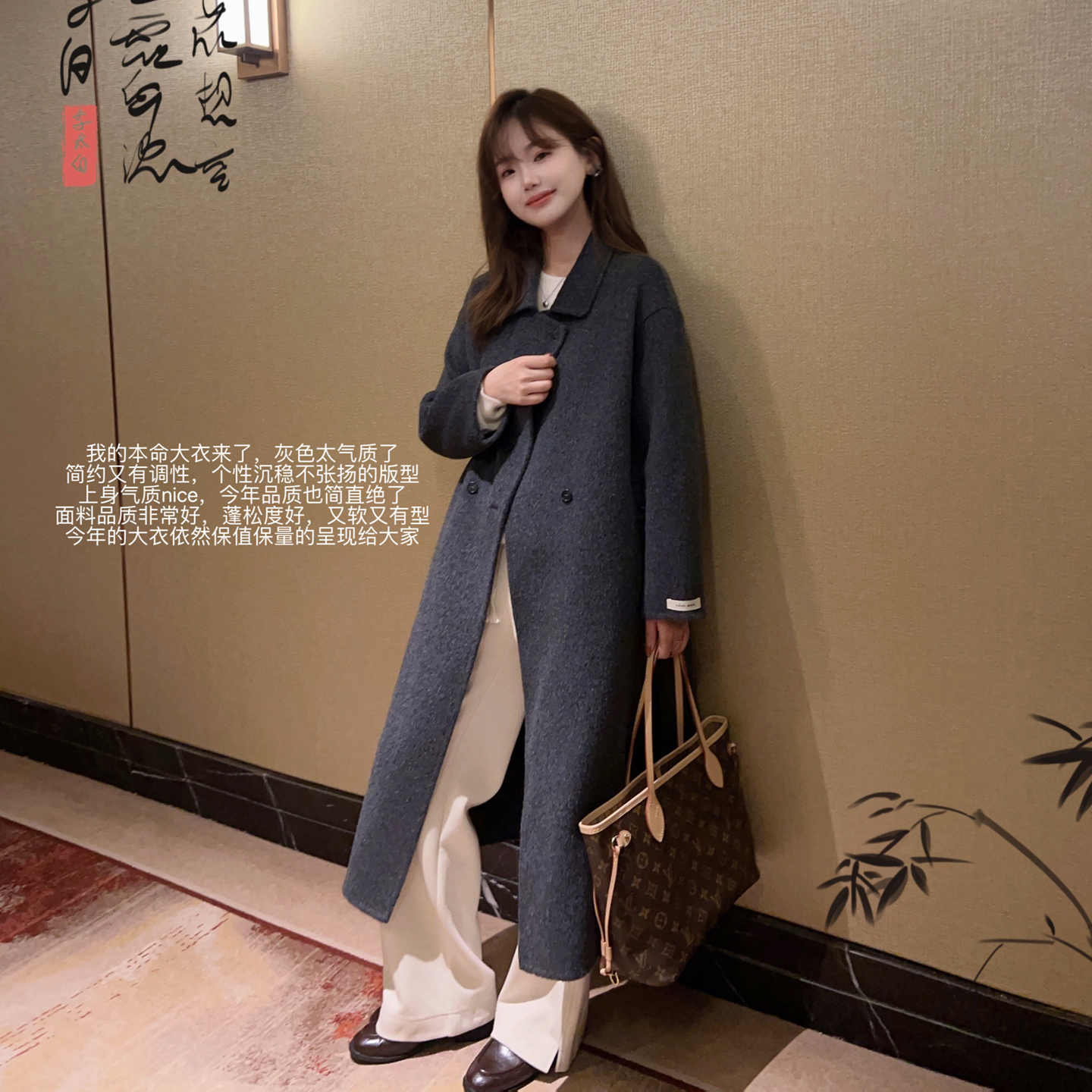 小小家 小个子小码灰色手工全羊毛大衣秋冬保暖中长款双面呢外套