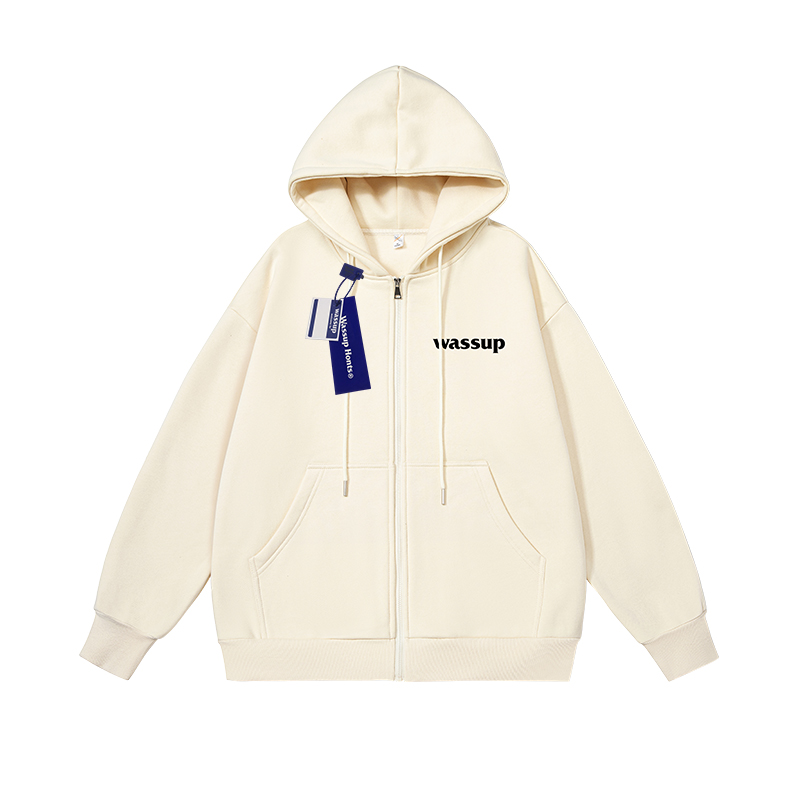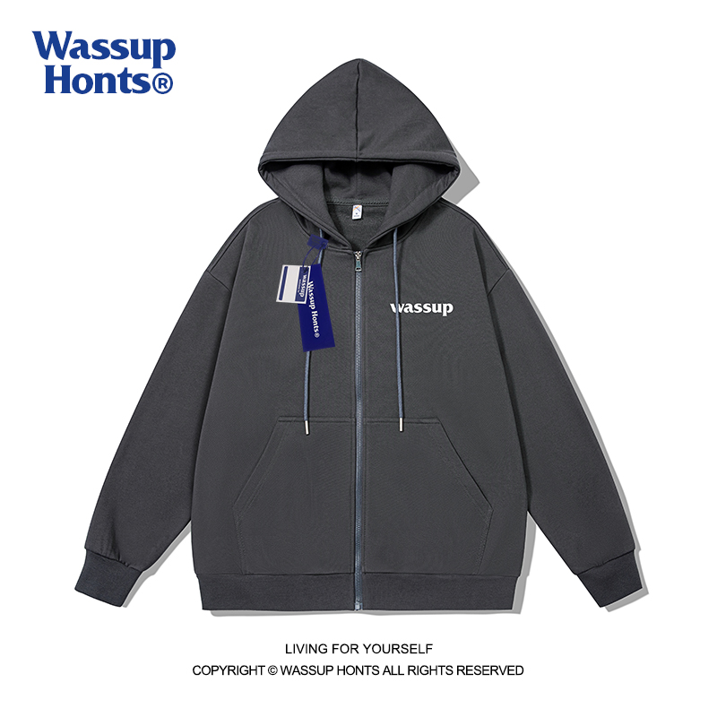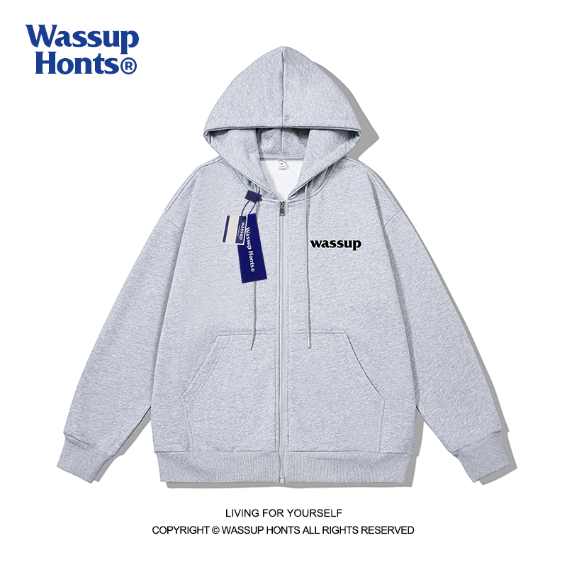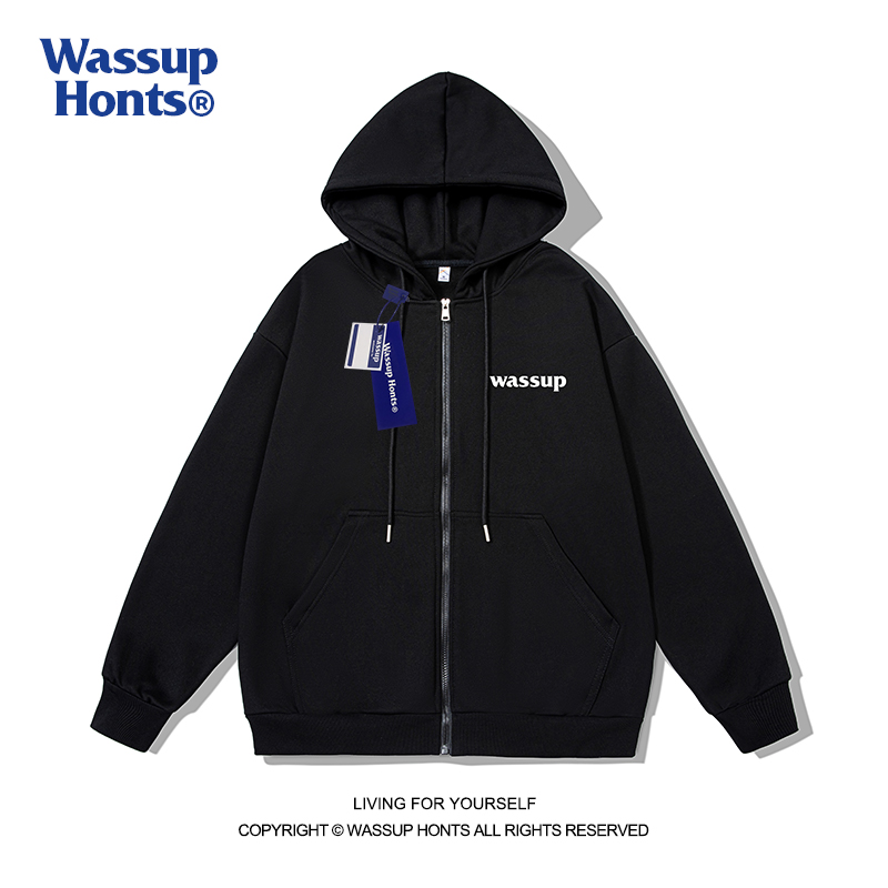 WASSUP连帽卫衣男开衫秋冬加绒情侣宽松运动休闲上衣春秋拉链外套