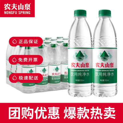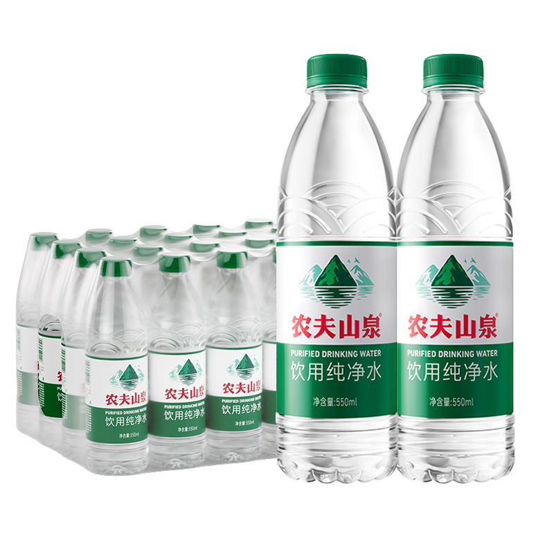 农夫山泉纯净水绿瓶550ml*12瓶*2箱24瓶小瓶天然饮用水非矿泉水