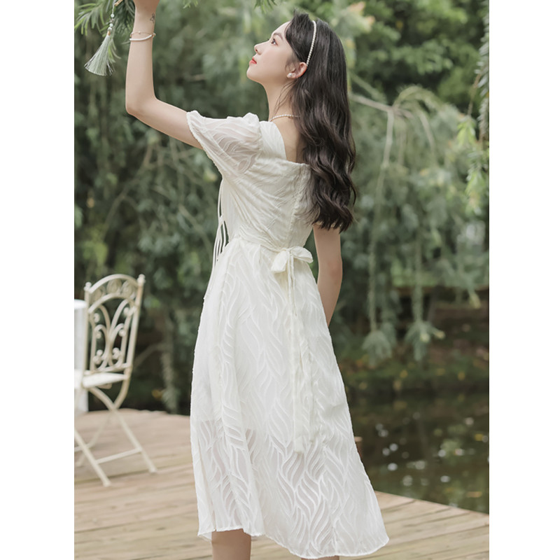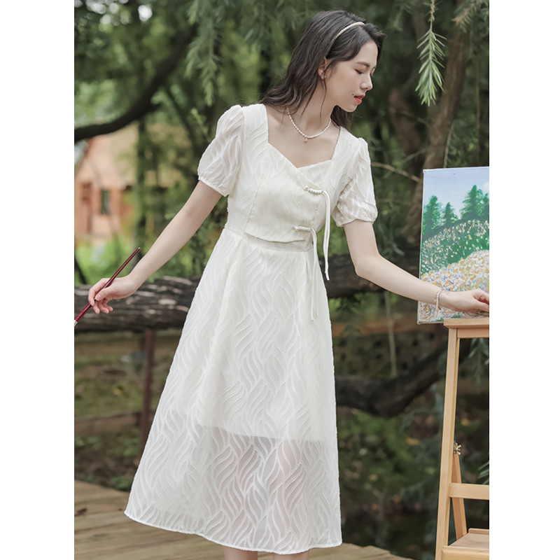 新中式短袖连衣裙女夏2025新款小清新甜美显瘦小个子法式茶歇长裙