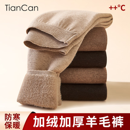 羊毛裤男士保暖裤秋冬高腰无痕女