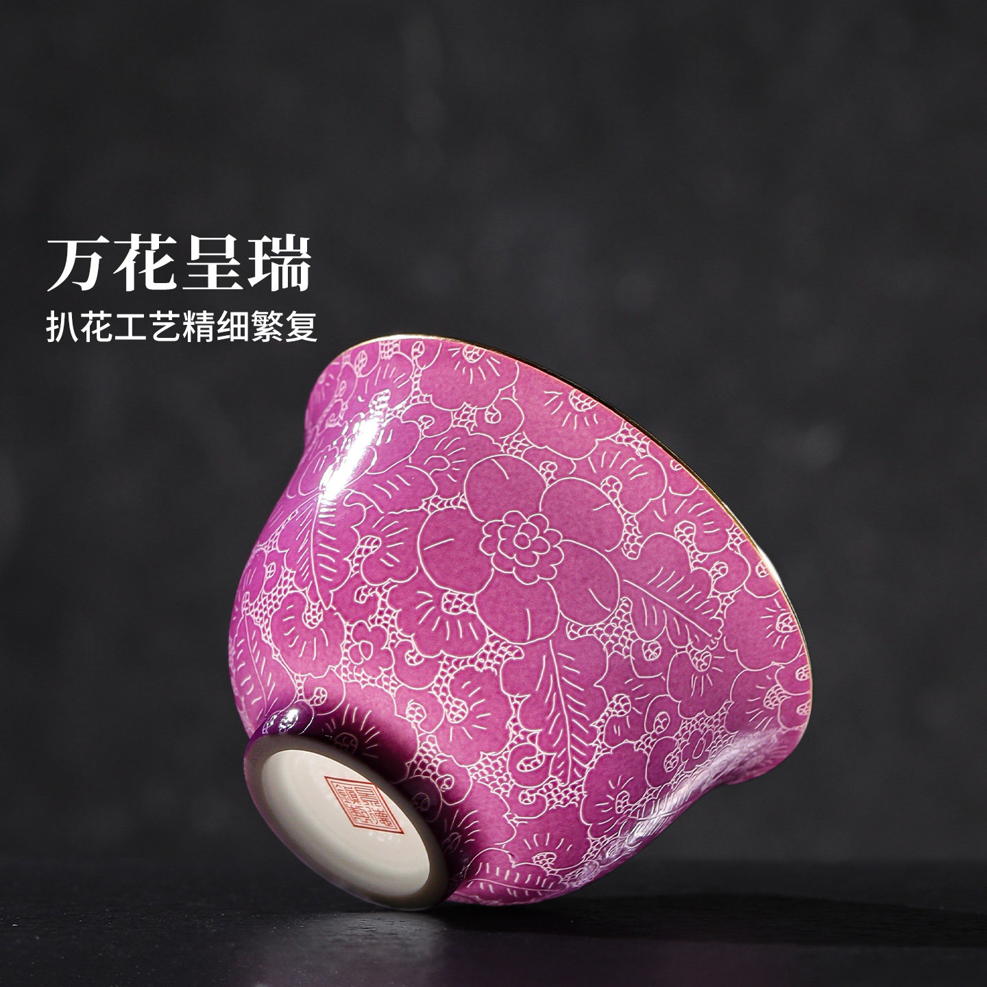 景德镇官方陶瓷扒花茶具礼盒主人杯精致高档茶杯品茗杯新年礼物