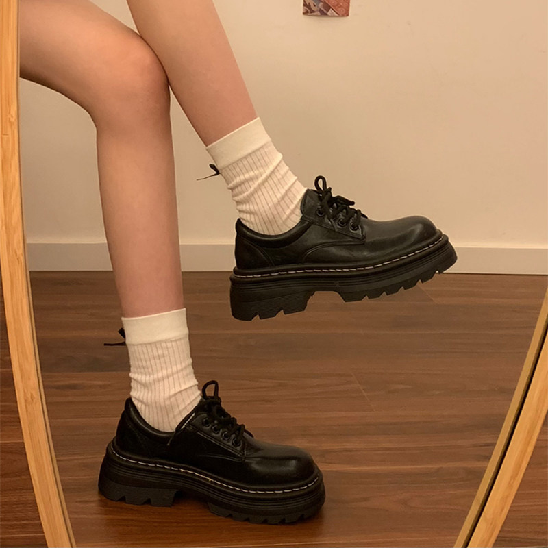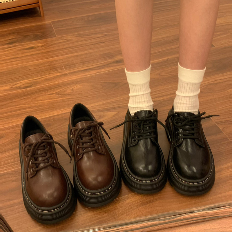 小sun家复古英伦小皮鞋女2025新款圆头爆款学院黑色厚底乐福单鞋